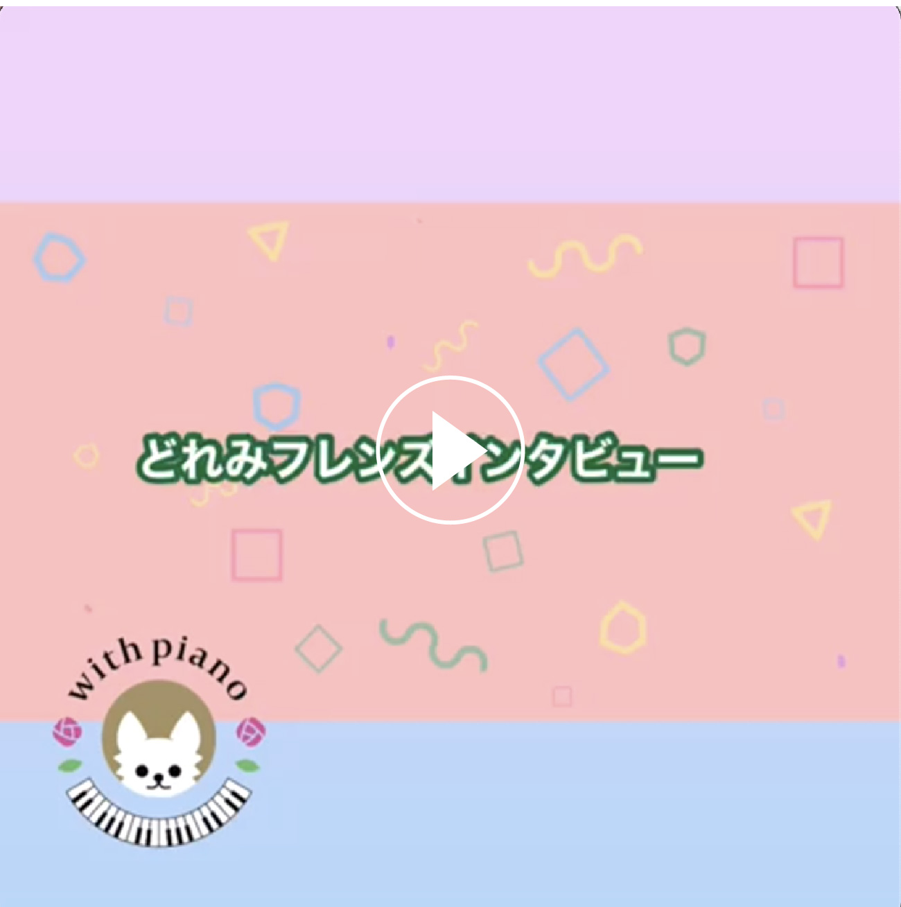 2歳からどれみフレンズの魅力満載のテキストを使い お子様が楽しんで 音楽の導入を行います。 当講師 どれみフレンズマスター講師 どれみフレンズとは、 「音楽を楽しみ学ぶ」をコンセプトにした2歳から通えるコースです。気まぐれなお子様でも目を輝かせる、実績あるレッスンです。 どれみフレンズを詳しくみる レッスン: 平日 月3回 または 土曜日 ワンレッスン 入会金: 5,500円 月 謝: 7,700円から 体験レッスンお問い合わせ・お申し込みはこちら